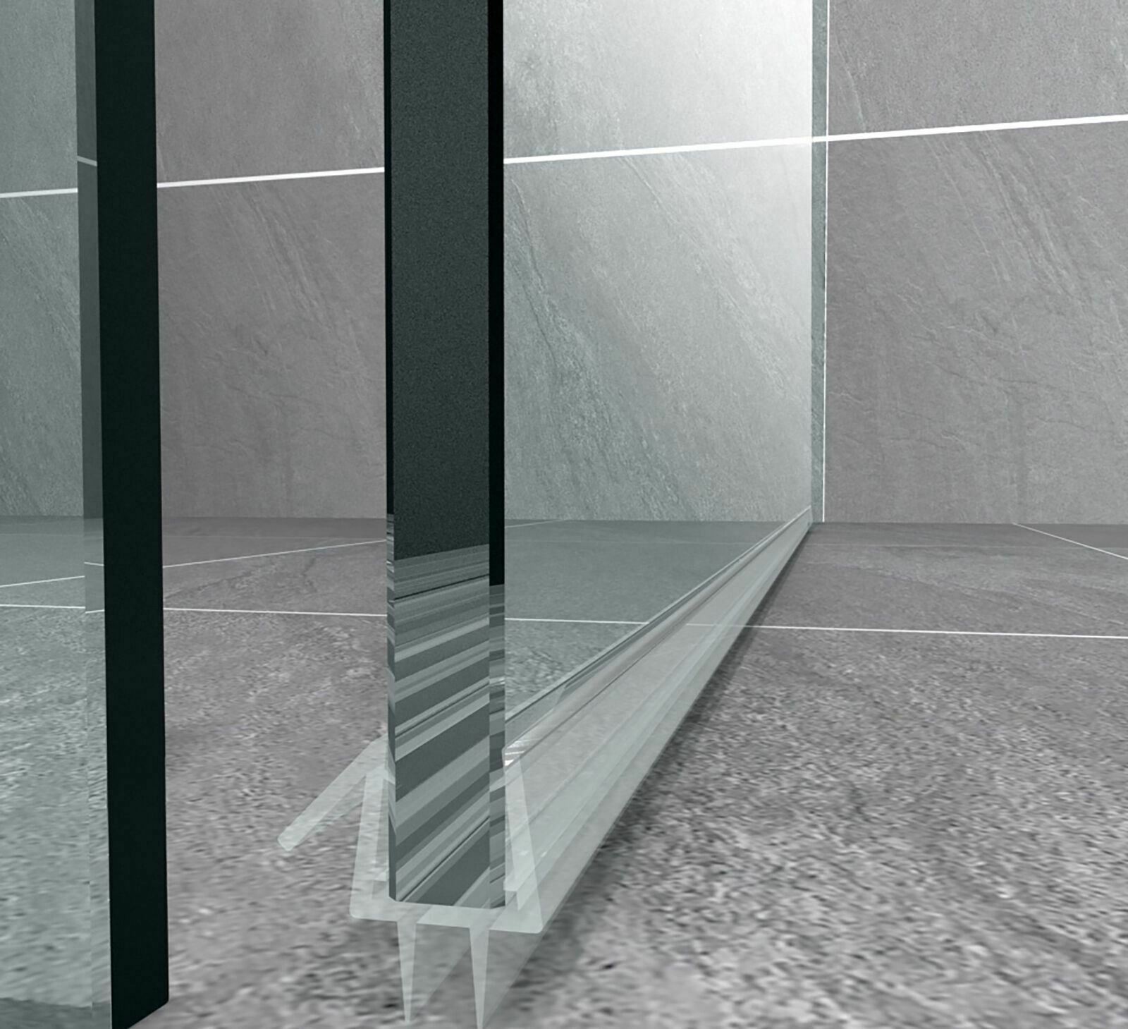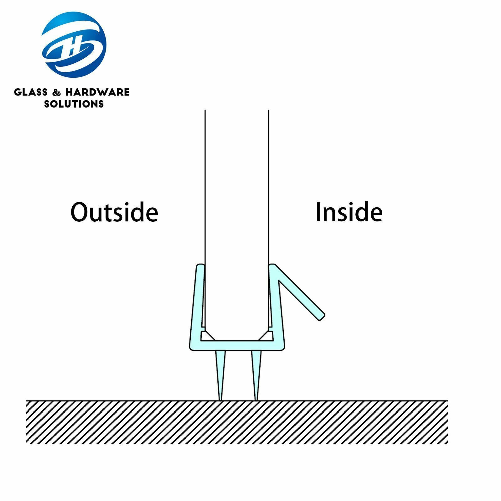 Door water seal for 10mm frameless shower screen. This water seal can minimises water splash and leakages between glass and floor Hard PVC plastic and soft Vinyl lip.